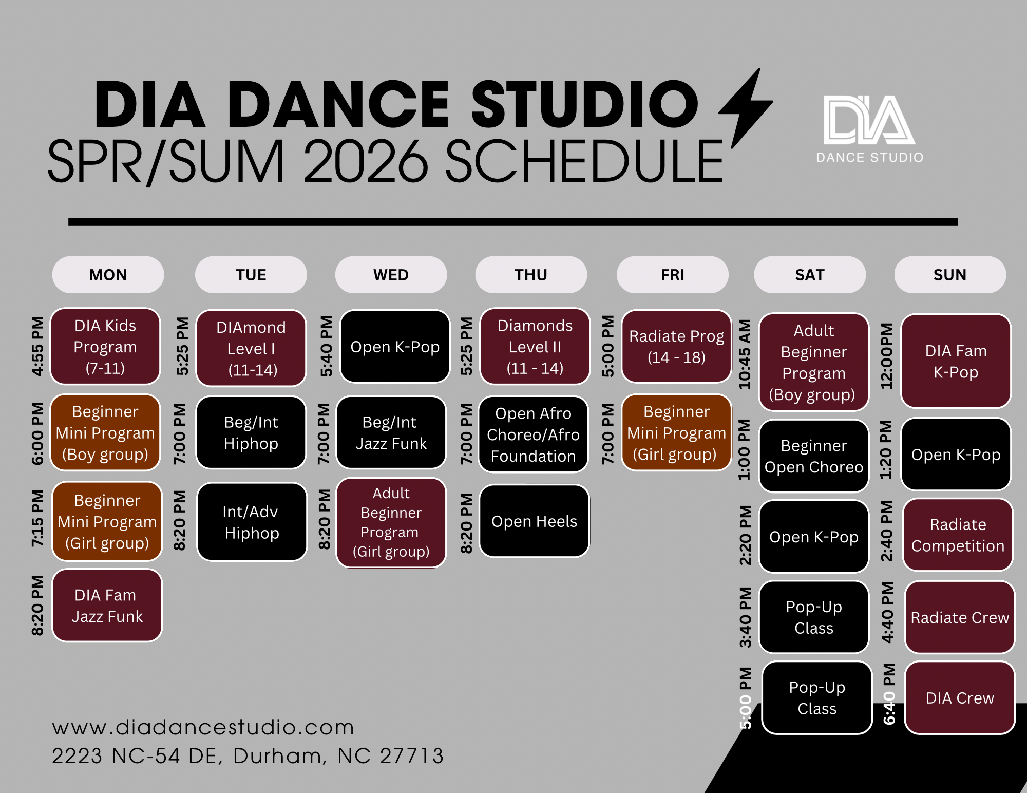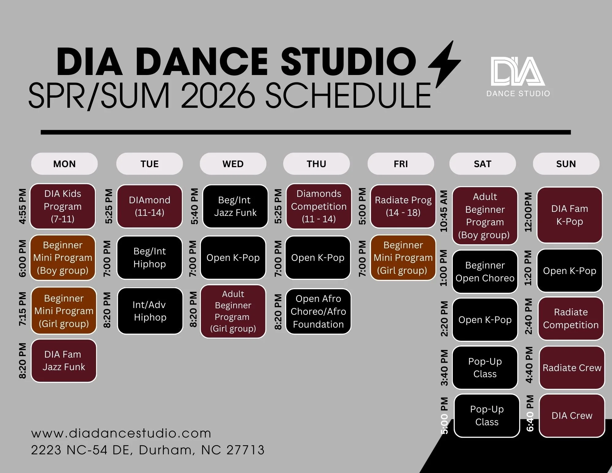 Beginner (Beg): Focusing on basic steps, movements, and technicality to build coordination and rhythm while beginning to focus on more detail.